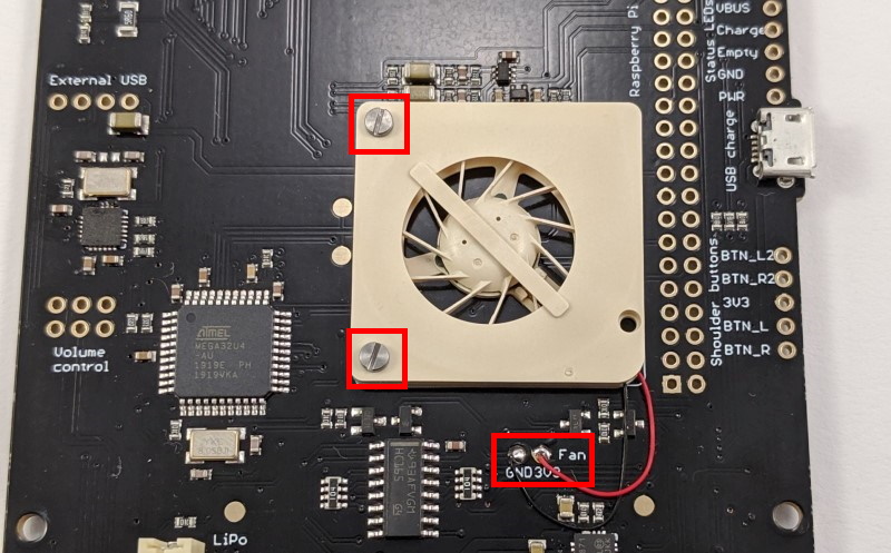 Wichtig: Wenn du einen Lüfter verwenden möchtest (empfohlen für den Raspberry Pi 3 A+), dann musst du diesen mit der Hauptplatine verschrauben, bevor sie mit dem Raspberry Pi verlötet wird.