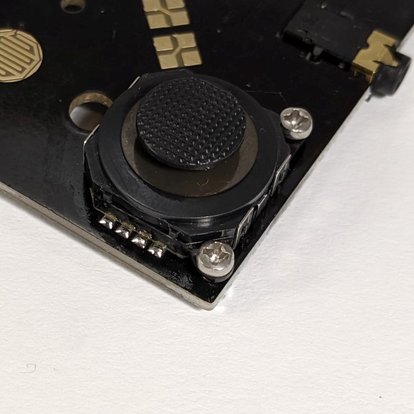 Wenn du Probleme mit dem Verlöten hast, kann es helfen, zunächst die Pads auf der Platine und am Joystick mit einer dünnen Schicht Lötzinn zu überziehen. Im verschraubten Zustand sollte das Zusammenlöten dann mit Flussmittel gut funktionieren.